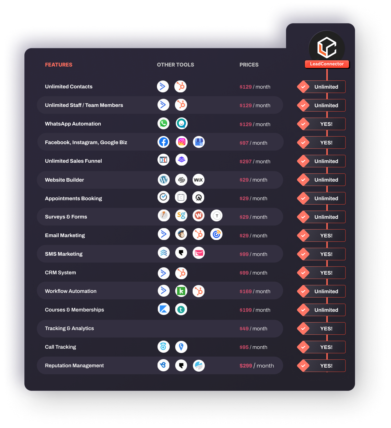 No. All our plans include secure, unlimited hosting for all your digital content. We use 40 Edge servers all around the world so that no matter where your visitors come from, your funnels, your website, and your e-commerce store will be reliable and lightning-fast. That means that if you’re paying for hosting now, you can cancel your current hosting account and save just by using LeadConnector.
